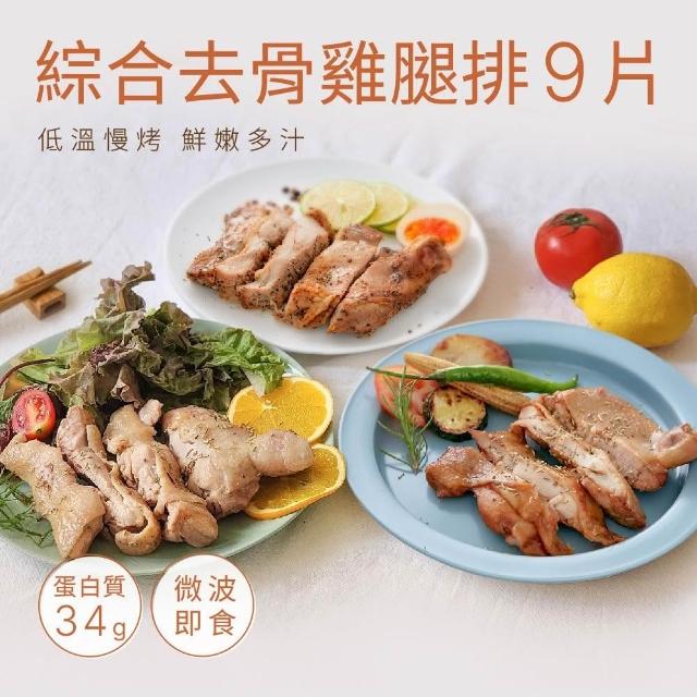 原味時代微波即食|嫩烤去骨雞腿排-9片組(義式香草/經典香蒜/黑胡椒/鮮磨椒香)