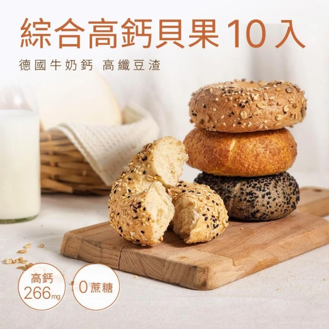 原味時代綜合元氣高鈣貝果-經濟10入組(帕瑪森起司/原味穀香/純黑芝麻)