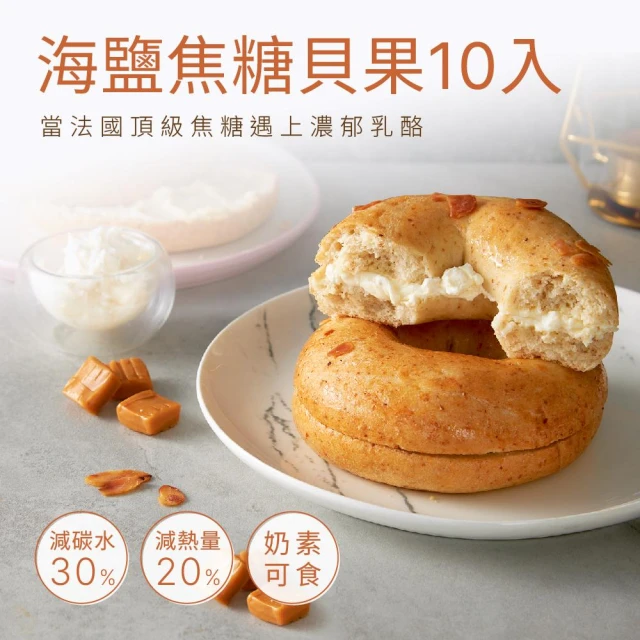 原味時代海鹽焦糖乳酪減醣貝果-經濟10入組