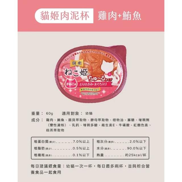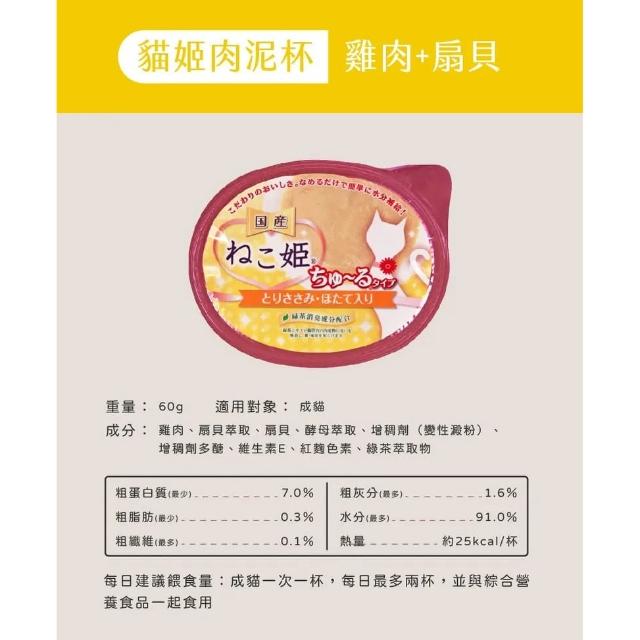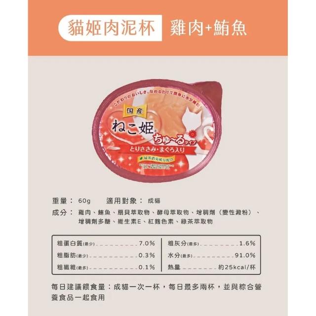 日本 貓姬 貓罐頭 60g*6入裝 貓餐杯 肉泥杯 成幼貓 副食餐杯 副食罐 貓罐