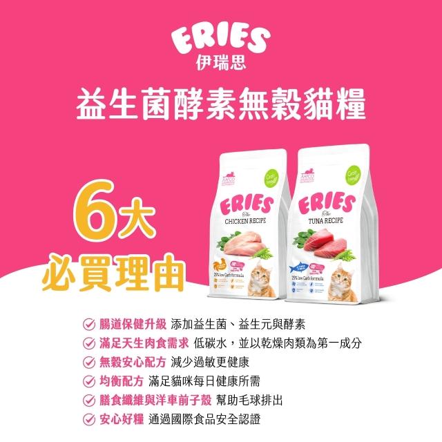EriesERIES 伊瑞思 貓飼料 1公斤 無穀 低碳水 低敏感 益生元 酵素 添加 幫助毛球排出