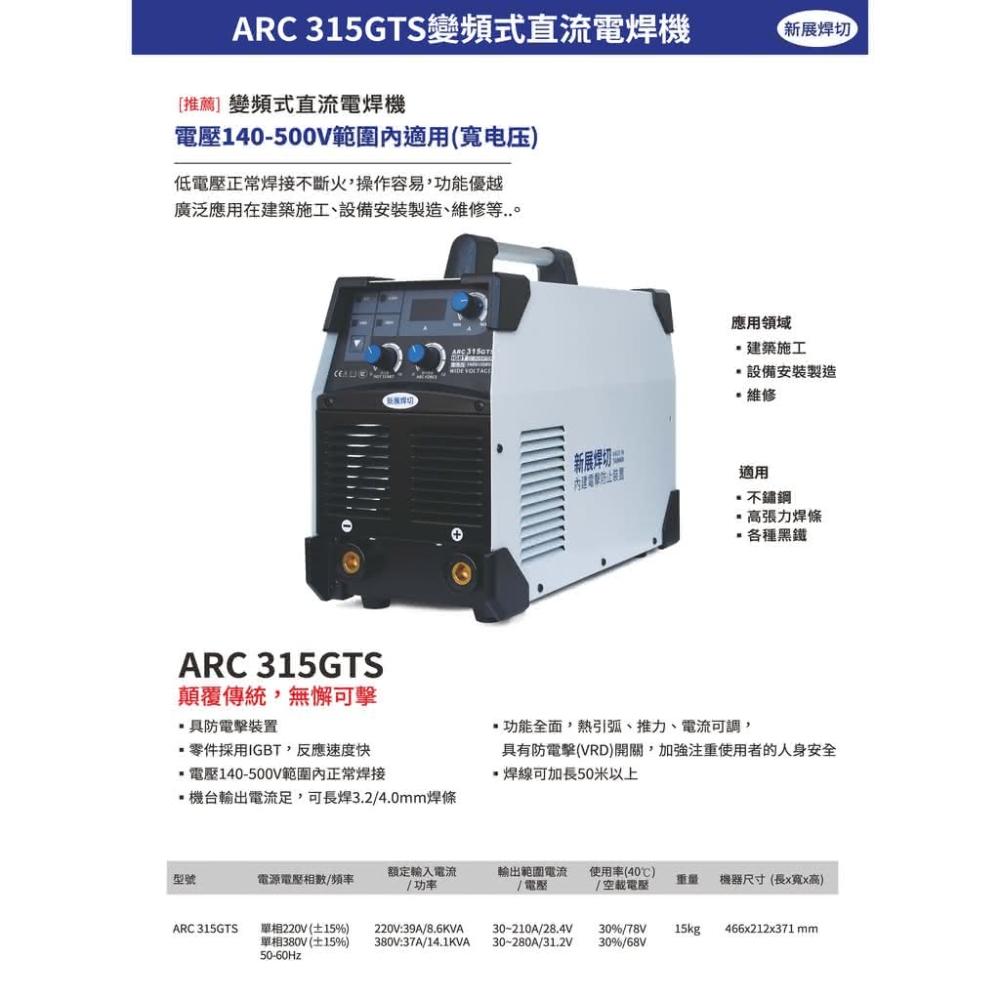 WIN五金 台灣新展焊切 ARC-315GTS 防電擊電焊機 140V-500V寬電壓變頻式電焊機 台灣製造 氬焊機