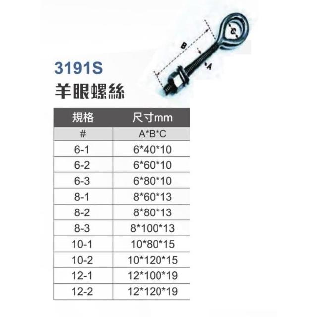 WIN五金 WIN 3191S 羊眼螺絲 單眼螺絲 多種規格 裝潢 白鐵螺絲 壁虎 吊環 吊帽