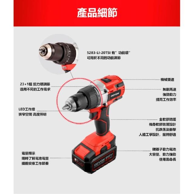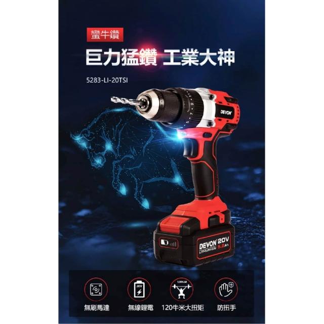 WIN五金 DEVON 大有 5283-Li-20TSI 20V 震動電鑽 120牛頓米 三用 鑽木 鑽鐵 鑽牆 電鑽