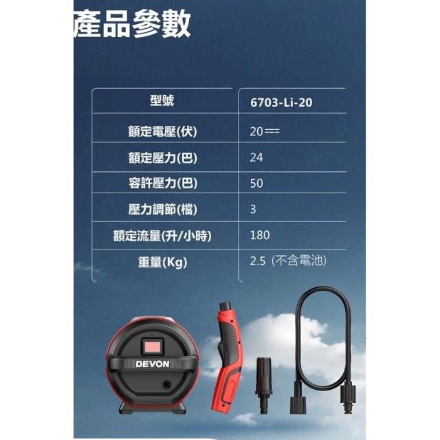 DEVON 大有WIN五金 DEVON 大有 20V 20 4.0單鋰電組 鋰電高壓清洗機 高壓清洗機 洗車機 無線洗車機 DPW201