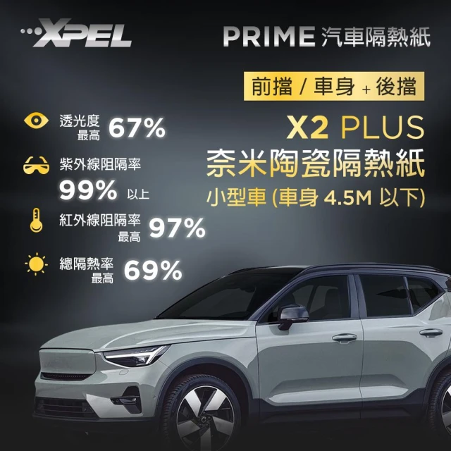 XPEL官方直營 - X2 PLUS 奈米陶瓷隔熱紙 小型車(車長4.5M以下) 前擋 / 車身+後擋 含安裝