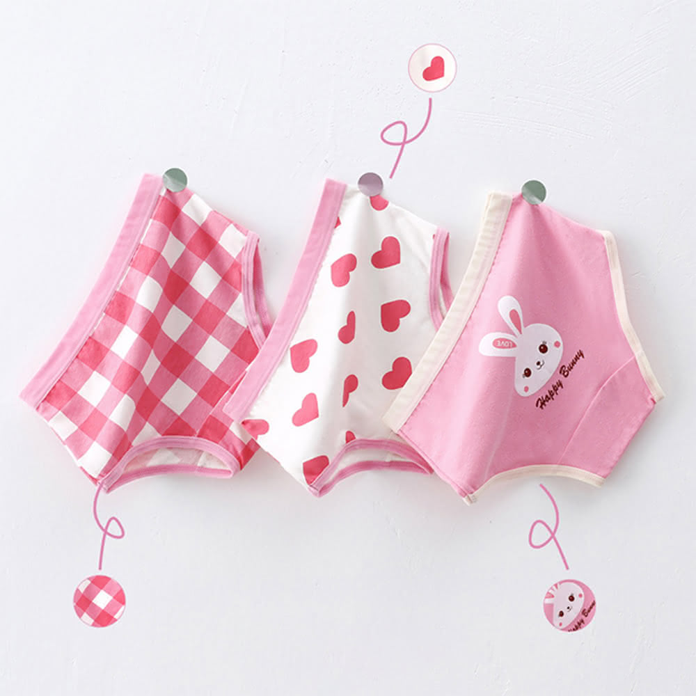 《粉紅桃子》三角-女童內褲 3件組|兒童內褲 女孩內褲 棉質三角褲 女生內褲 雙層襠部 女生底褲 抑菌抗菌內褲