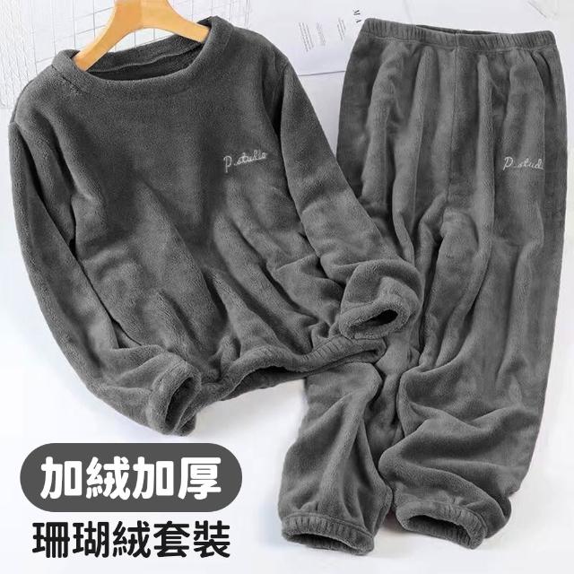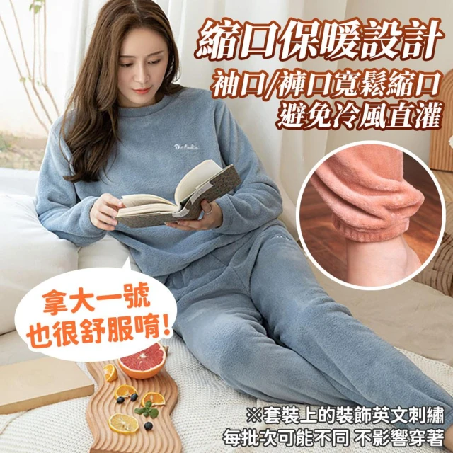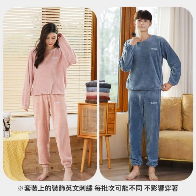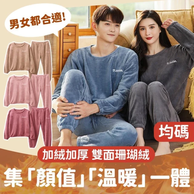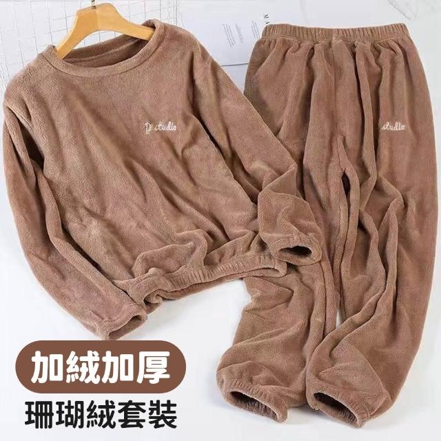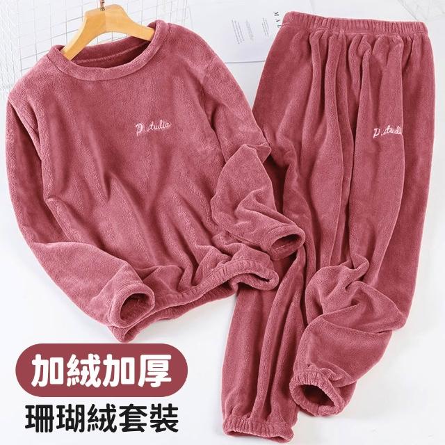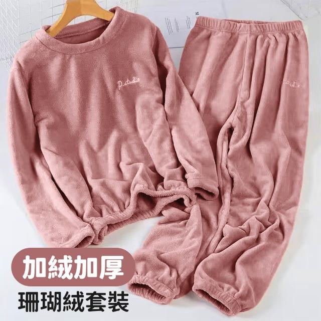 《粉紅桃子》成人款-均碼 珊瑚絨套裝|加絨加厚 珊瑚絨 長袖 保暖 睡衣 居家服 雙面刷毛 長袖長褲套裝