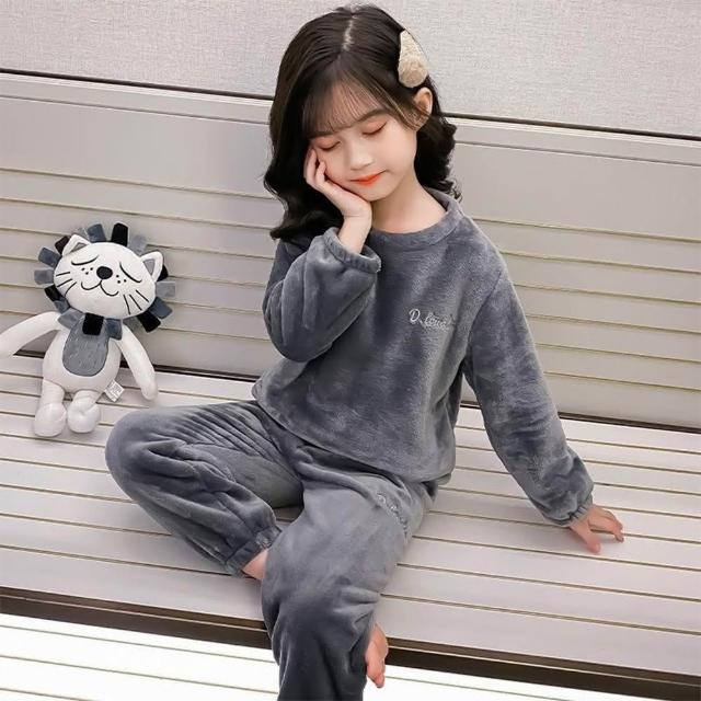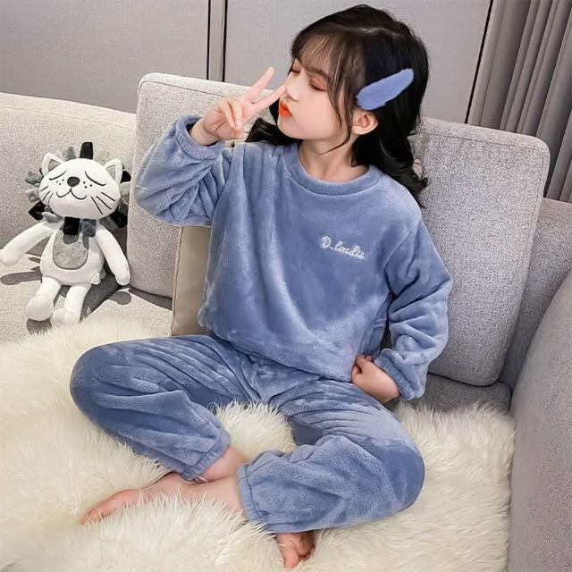 《粉紅桃子》兒童款 珊瑚絨套裝|加絨加厚 珊瑚絨 長袖 保暖 睡衣 居家服 雙面刷毛 長袖長褲套裝