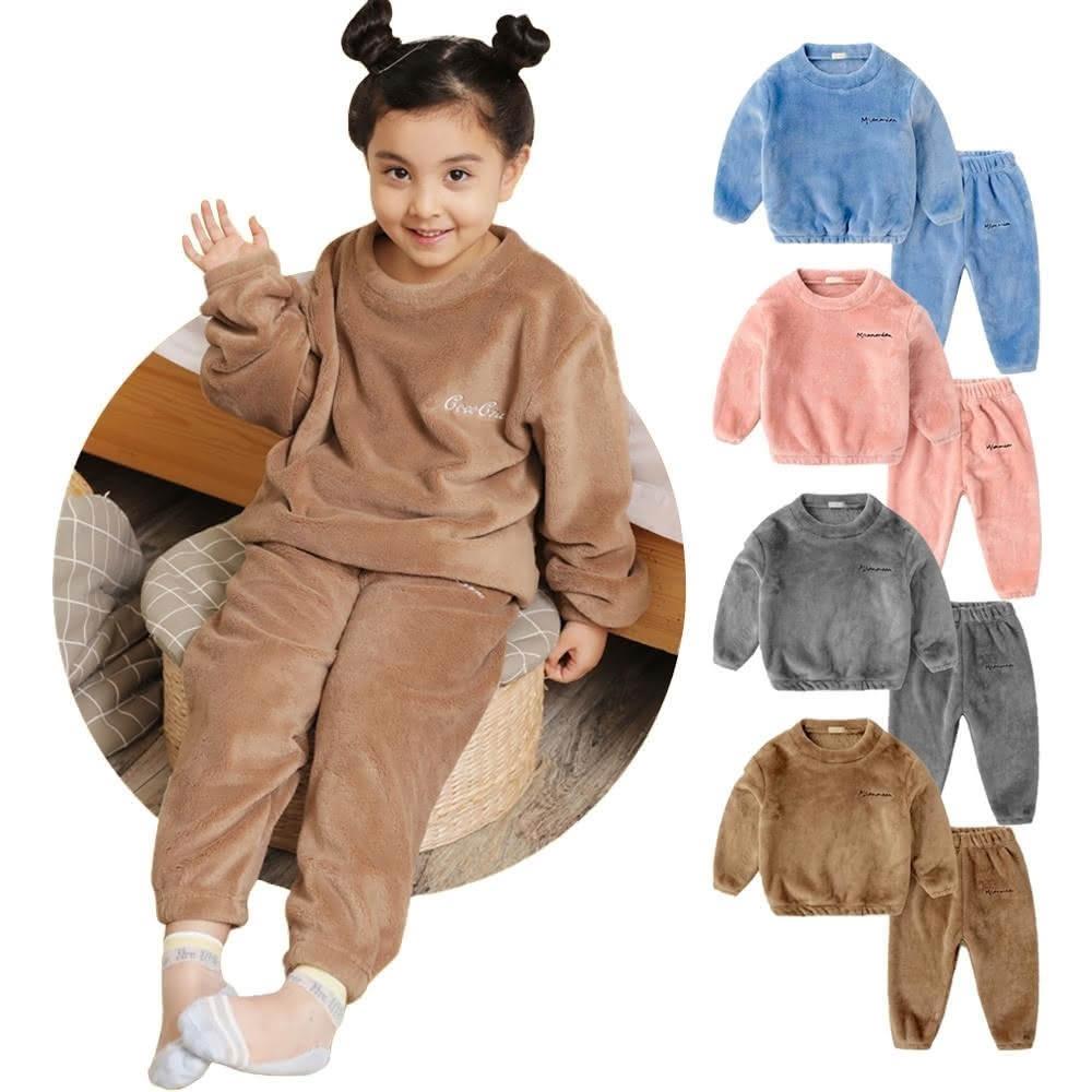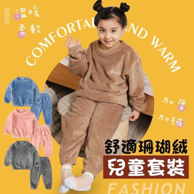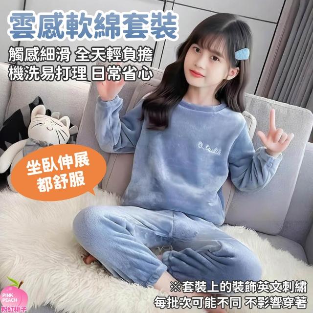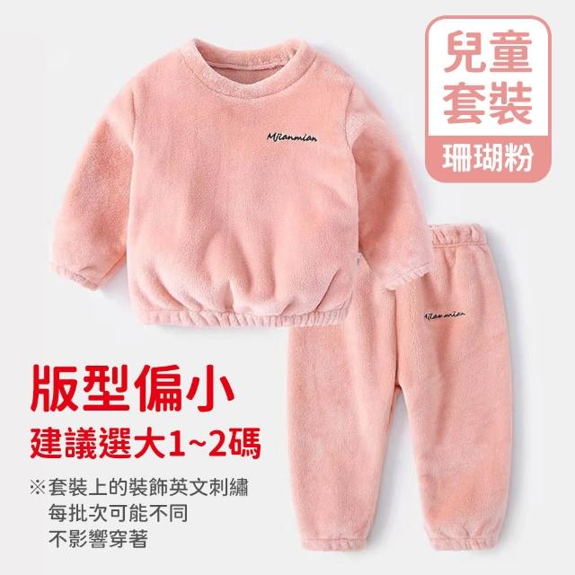 《粉紅桃子》兒童款 珊瑚絨套裝|加絨加厚 珊瑚絨 長袖 保暖 睡衣 居家服 雙面刷毛 長袖長褲套裝