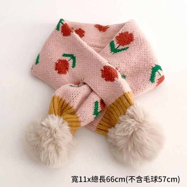 《粉紅桃子》兒童毛球造型圍巾|兒童圍巾 加厚加暖 可愛針織圍脖 交叉棋盤格 毛球圍巾 寶寶嬰兒圍巾