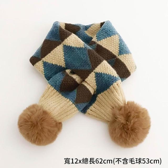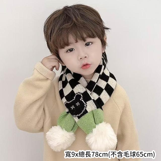《粉紅桃子》兒童毛球造型圍巾|兒童圍巾 加厚加暖 可愛針織圍脖 交叉棋盤格 毛球圍巾 寶寶嬰兒圍巾