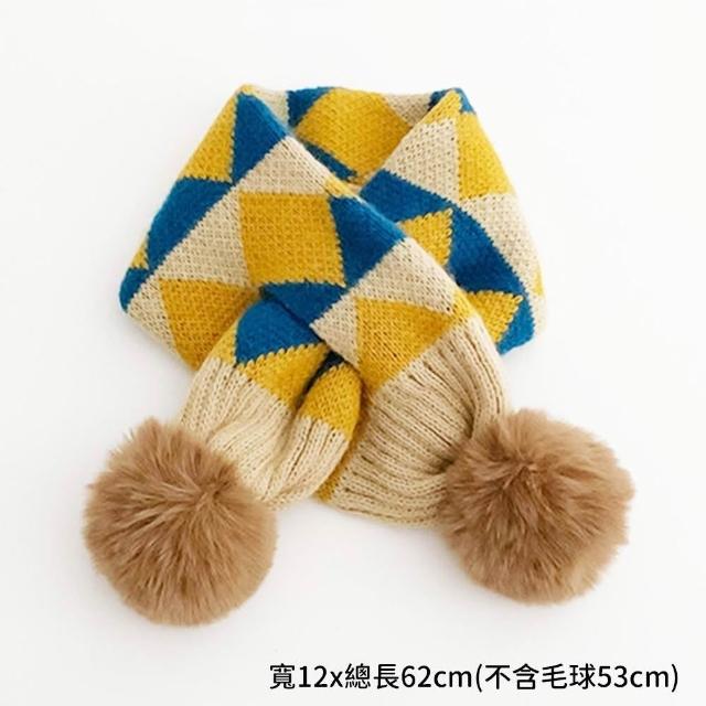 《粉紅桃子》兒童毛球造型圍巾|兒童圍巾 加厚加暖 可愛針織圍脖 交叉棋盤格 毛球圍巾 寶寶嬰兒圍巾