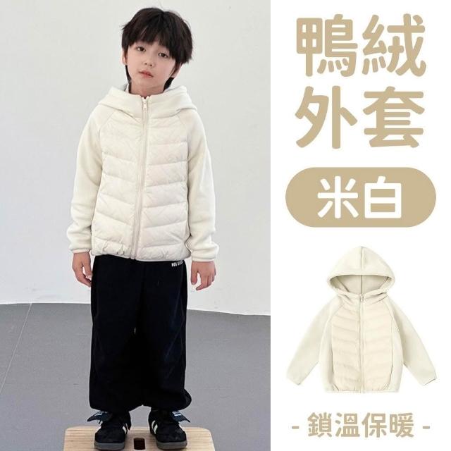 《粉紅桃子》白鴨絨 兒童羽絨外套|兒童連帽外套 拼接式 內刷毛加厚秋冬外套 秋冬保暖兒童外套 鴨絨外套 男童女童羽絨衣