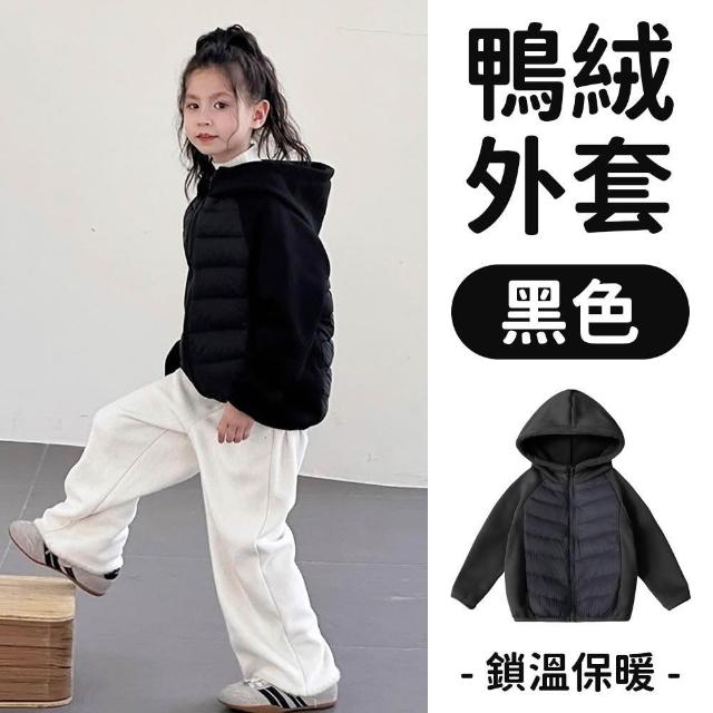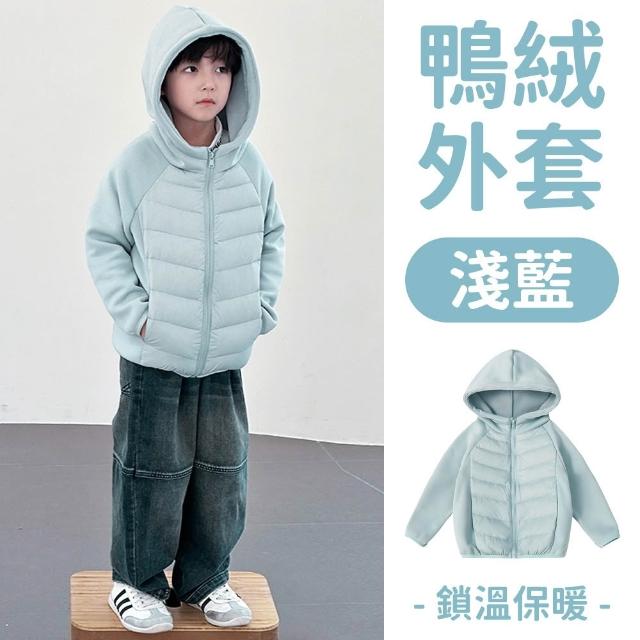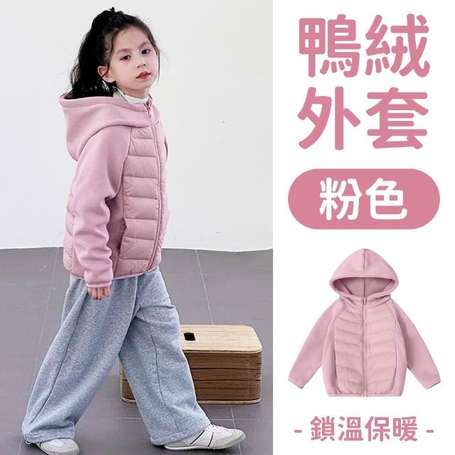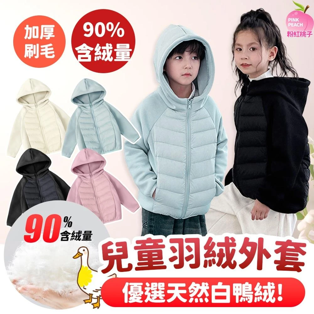 《粉紅桃子》白鴨絨 兒童羽絨外套|兒童連帽外套 拼接式 內刷毛加厚秋冬外套 秋冬保暖兒童外套 鴨絨外套 男童女童羽絨衣