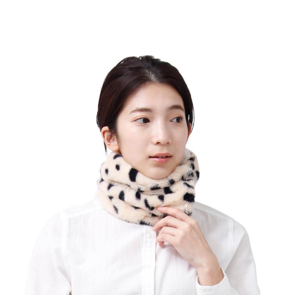 Aube 日本Aube 日本 2way壓釦式保暖動物紋絨毛圍脖(日本進口 圍巾 披肩)交換禮物 聖誕節 豹紋 保暖