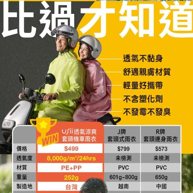 USii 優系透氣涼爽機車雨衣 套頭款 超值2入組(一件式雨衣 套頭雨衣 機車雨衣)