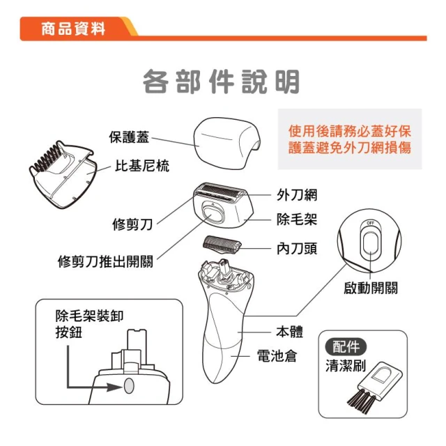 電動除毛刀 防水 電池式 ES-WA10-D(乾濕兩用 可水洗)美體刀 除毛刀