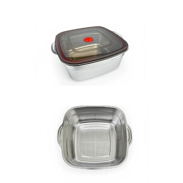 OSAMA 王樣順豐收納王 304# 30公分雙耳多功能盆(套組) (不鏽鋼調理盆*1 不鏽鋼瀝水籃*1 上蓋*1)