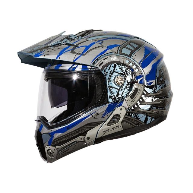 SOLSM-6P複合可掀式安全帽 賽博格_銀/藍銀|SOL安全帽官方商城(可樂帽|汽水帽|雙D扣|內墨片|藍芽耳機槽)