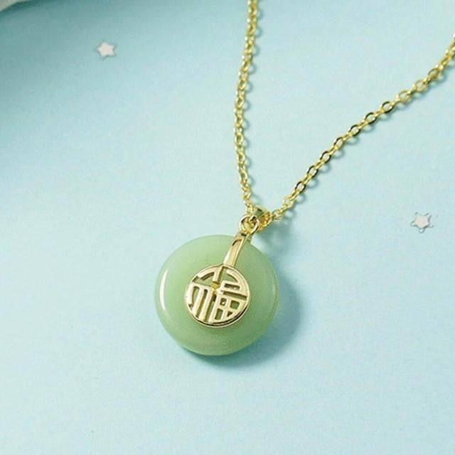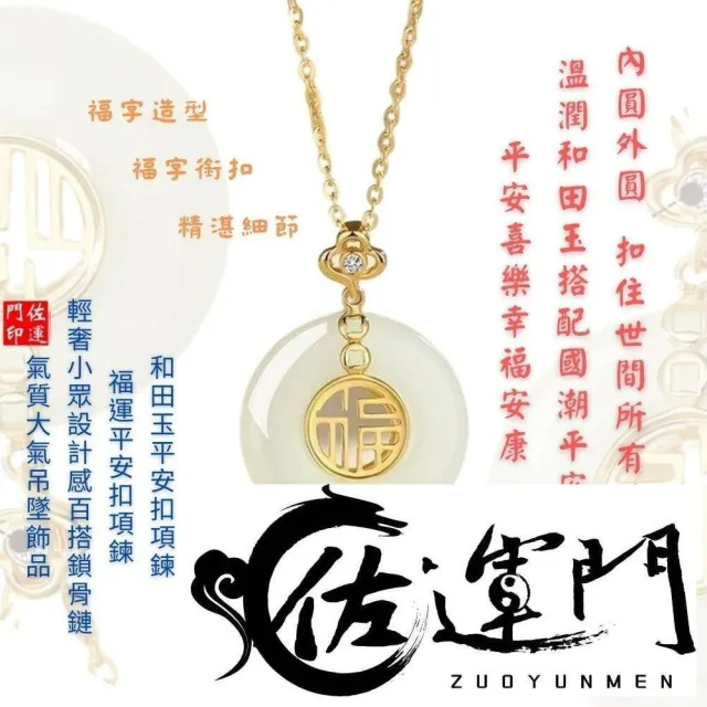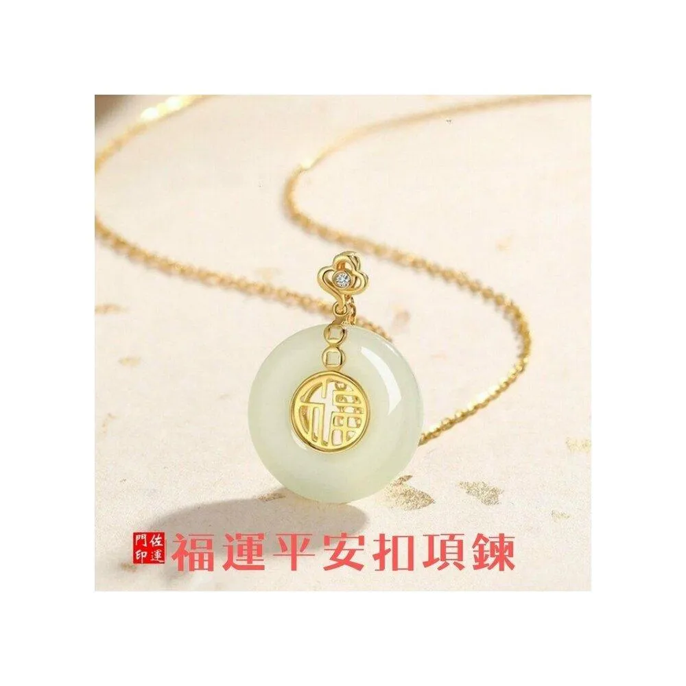 佐運門 專業開光 福字平安扣項鍊 鎖骨鏈 項鍊飾品 和田玉吊墜 平安扣 頸鍊 短項鍊 雙面項鍊 福字