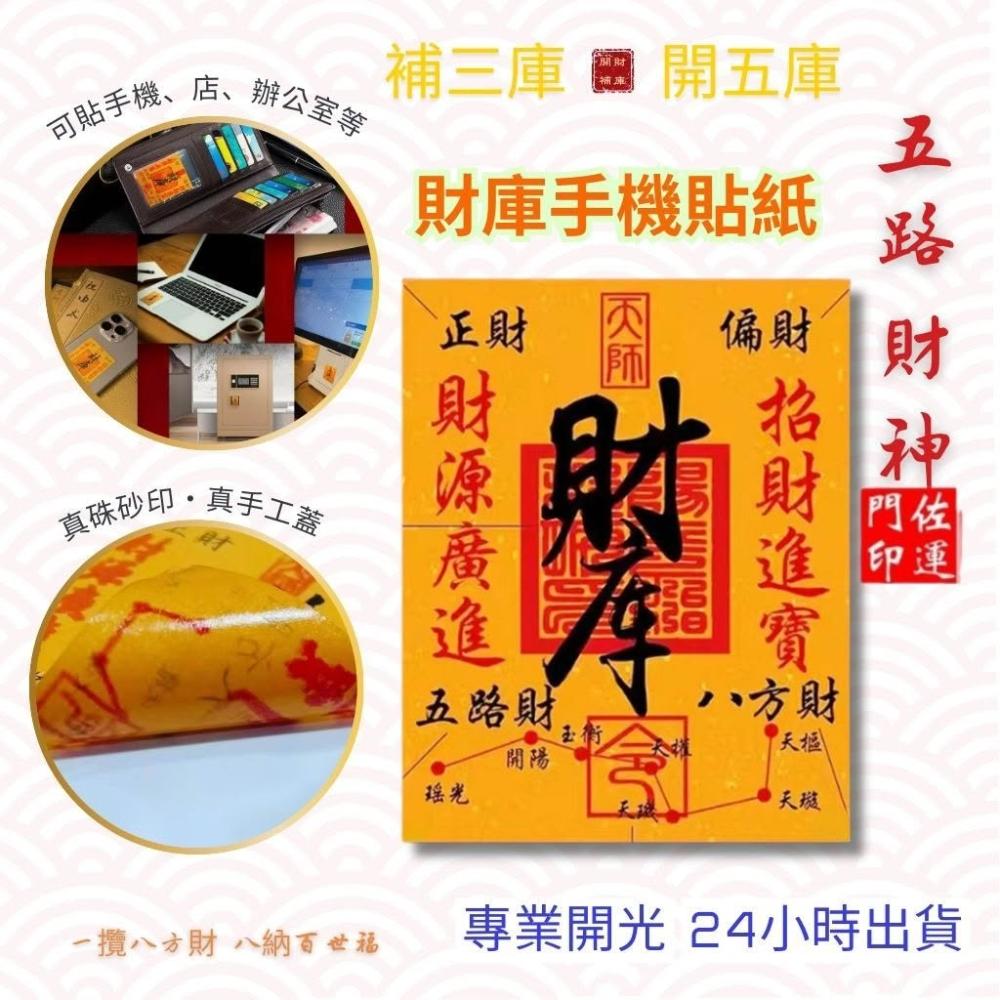 佐運門專業開光 財庫手機貼紙 真硃砂手工蓋印 招財 補財庫 錢母 五路財神 偏財運 貼手機 貼錢包 招財符令 補三庫
