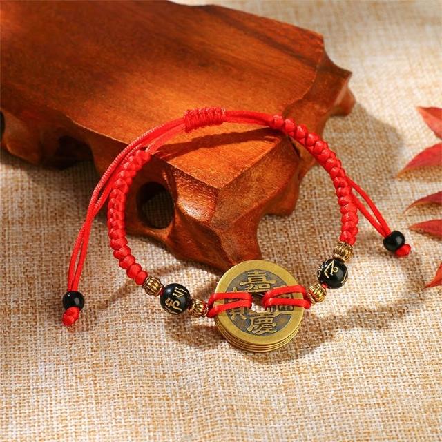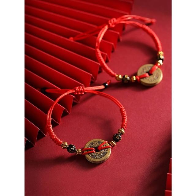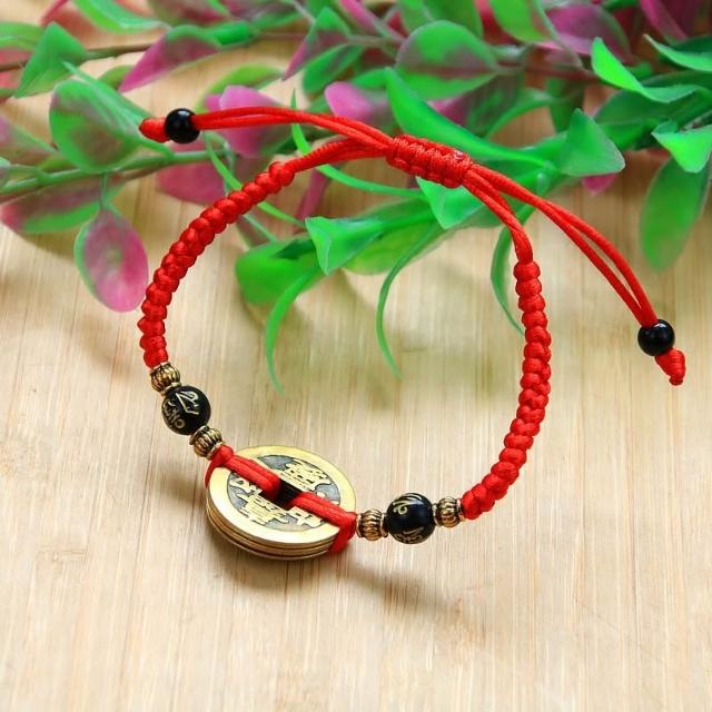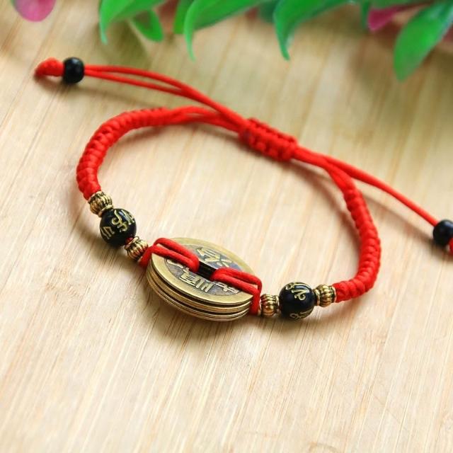佐運門 五帝錢編織手繩 銅錢 六字真言 編織手繩 金剛結紅繩手鍊 護身 辟邪 男女配飾 開運飾品 護身手繩