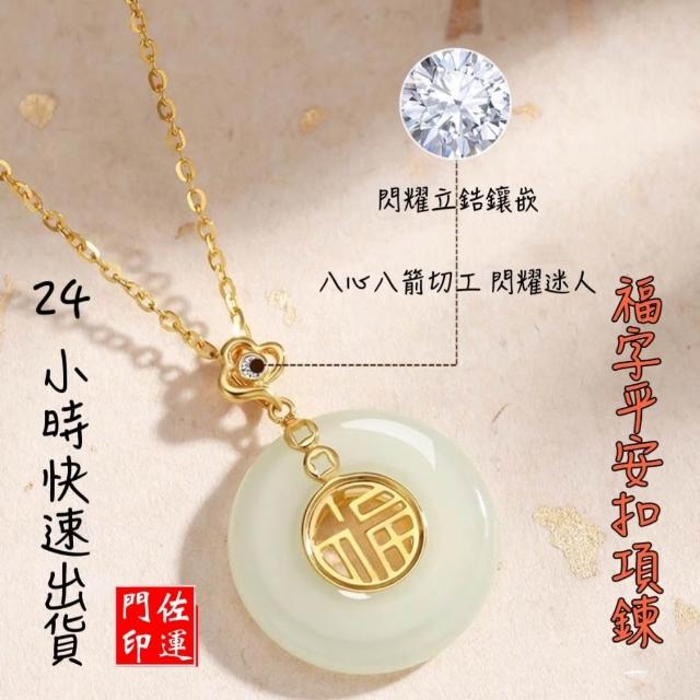 佐運門【專業開光】和田玉平安扣項鍊 福字吊墜 鎖骨鏈 氣質大氣 輕奢設計感 百搭頸鍊 招財開運 平安喜樂 玉石飾品