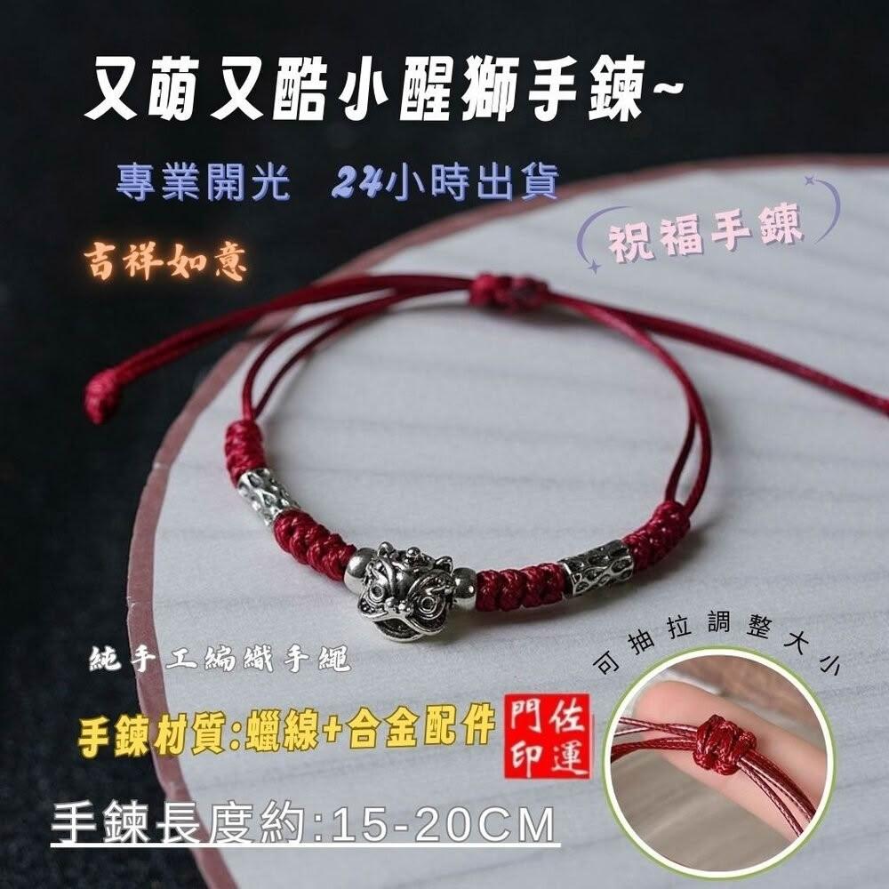 佐運門 專業開光 平安呆萌編織小醒獅手繩 醒獅 編織繩 手繩 轉運手繩 復古男女 情侶手飾 好運飾品 禮物手繩 蠟線手繩