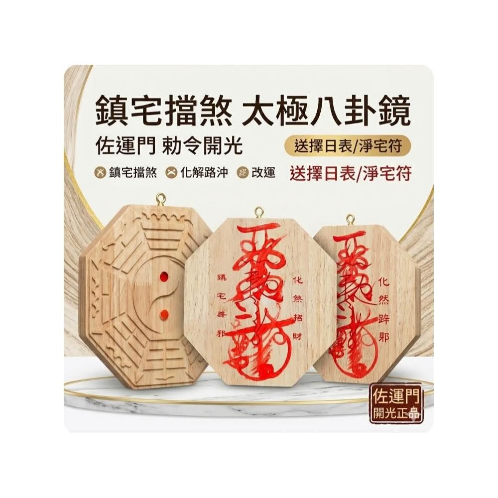 佐運門敕令開光太極八卦鏡 鎮宅化煞辟邪 招財路沖反弓煞 壁刀煞 屋角煞 穿心煞 凹風煞 贈擇日表淨宅符 木製風水擺件