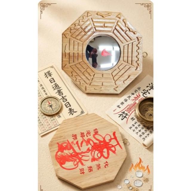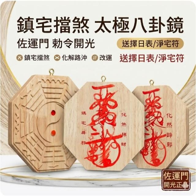 佐運門敕令開光太極八卦鏡 鎮宅化煞辟邪 招財路沖反弓煞 壁刀煞 屋角煞 穿心煞 凹風煞 贈擇日表淨宅符 木製風水擺件