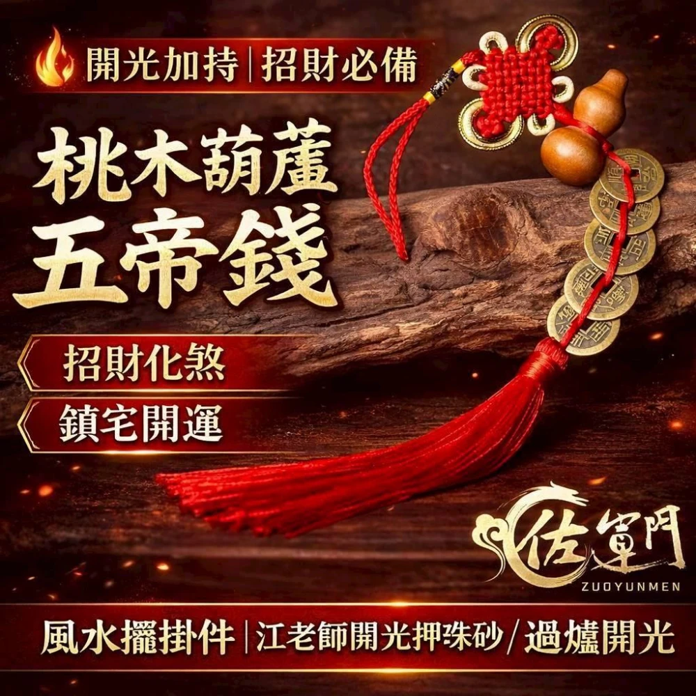 佐運門 桃木葫蘆五帝錢吊飾 天然桃木葫蘆 過爐開光 紅繩五帝錢 五帝錢吊飾 招財吊飾 風水掛件 風水配件 風水掛飾