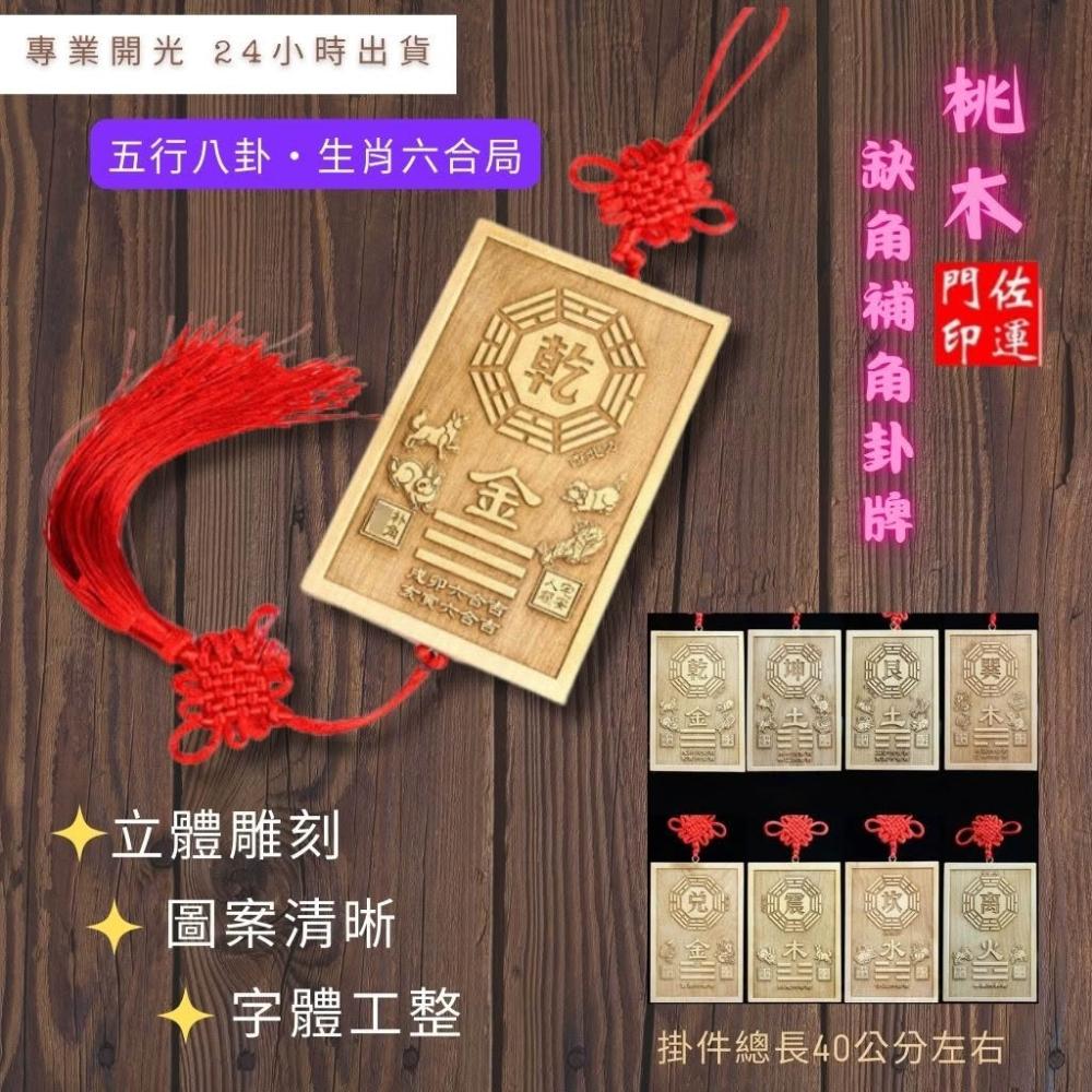 佐運門風水商城開光桃木陽宅補缺角 乾兑艮坤 避邪 桃木補角 八卦掛牌 房屋補缺角 木雕 擺件 乾卦 擺件 掛件