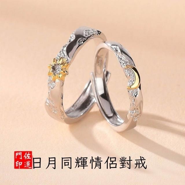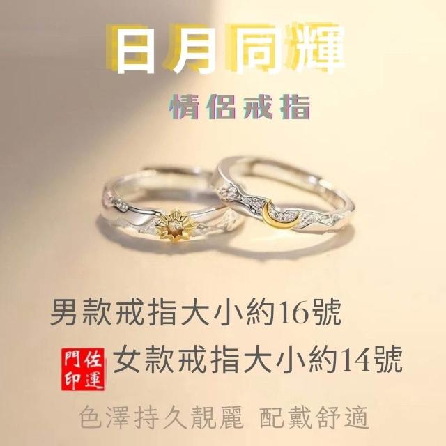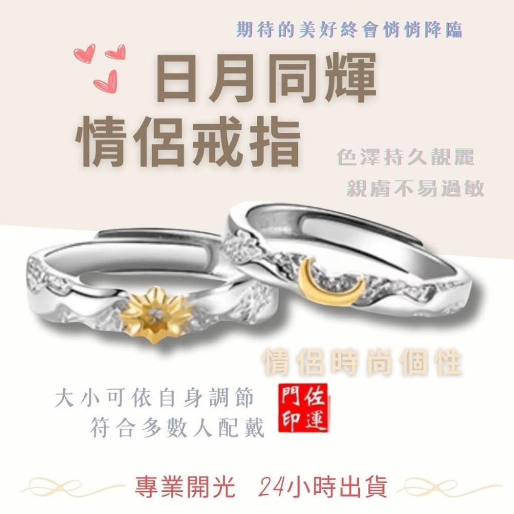 佐運門 專業開光 日月同輝情侶戒指 開口可調節 活圍戒指 太陽戒指 月亮戒指 男女對戒 生日禮物 情人節禮物 情侶對戒
