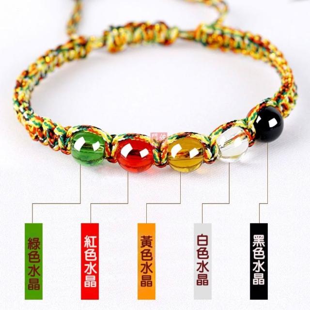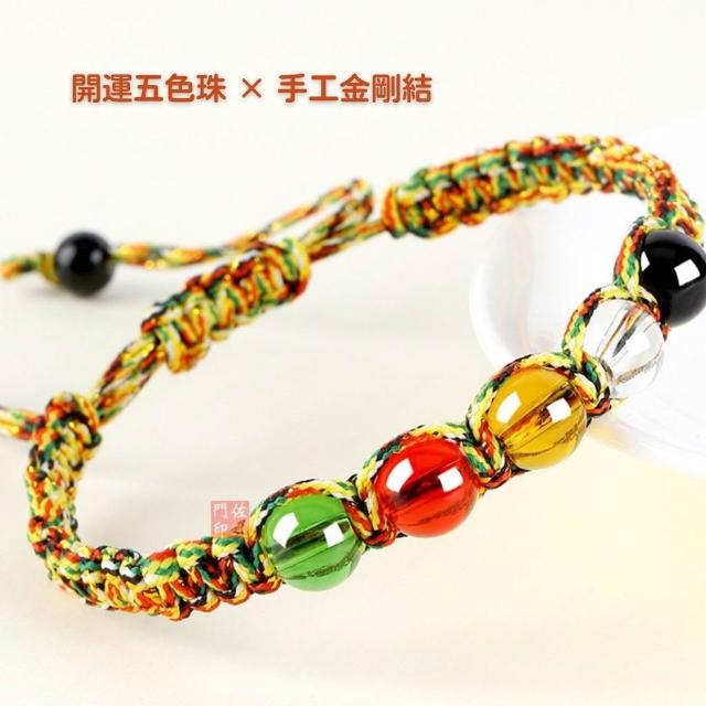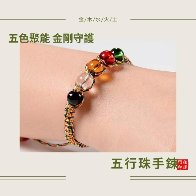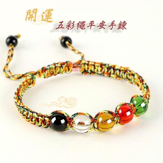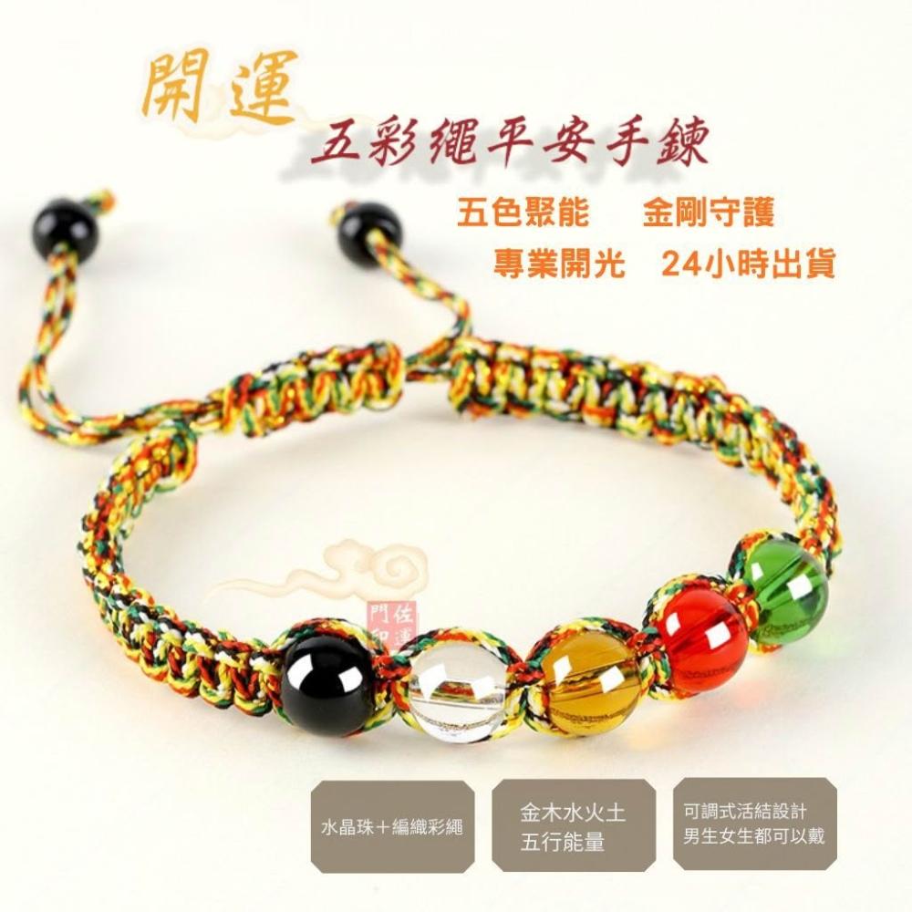 佐運門 專業開光 五色繩平安手鍊 五行水晶珠 招財轉運 辟邪保平安 金剛結手繩 男女可戴 手工編織 五色線 五彩繩