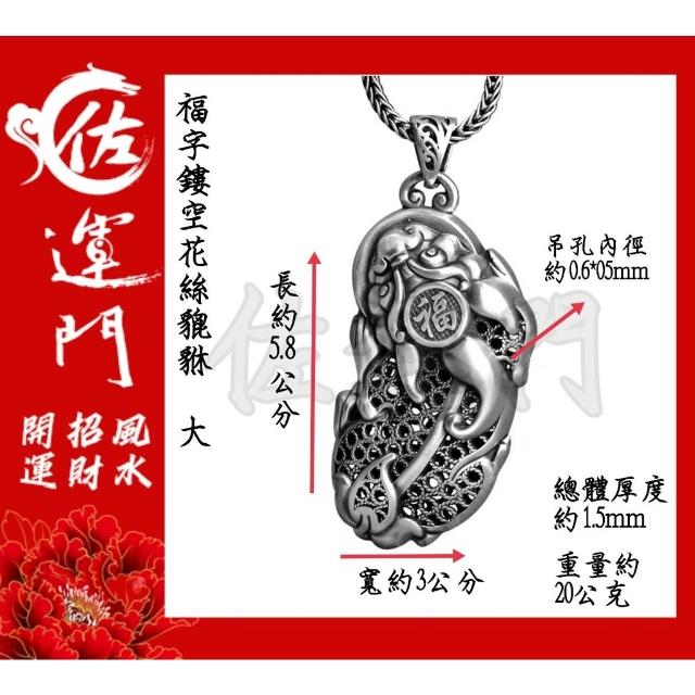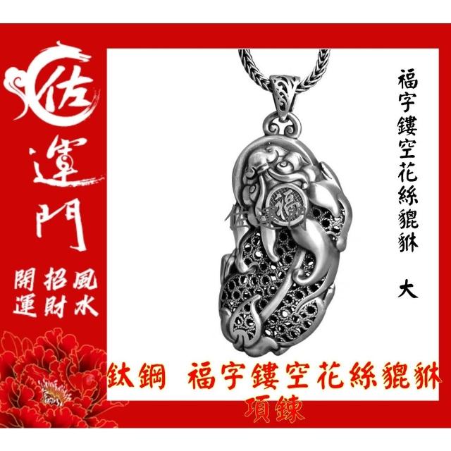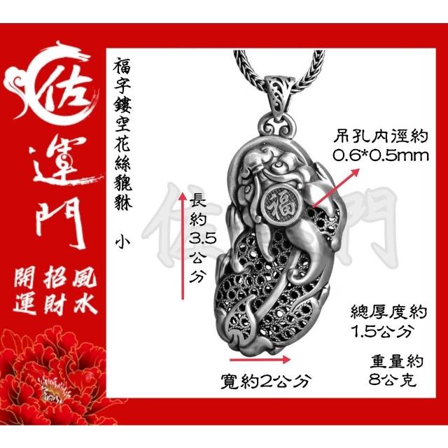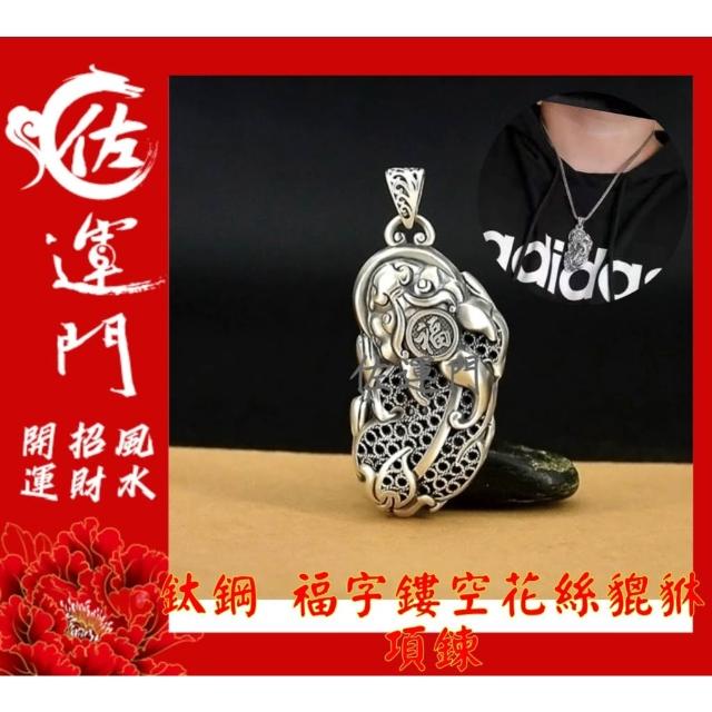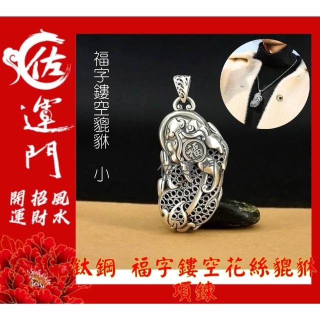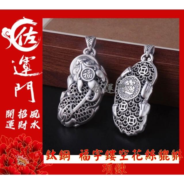 佐運門風水商城現貨 開光 鈦鋼 銀 福字貔貅 鏤空花絲 吊墜 項鍊 招財 貔貅項鍊 避邪 吊飾 銀項鍊 鈦鋼項練