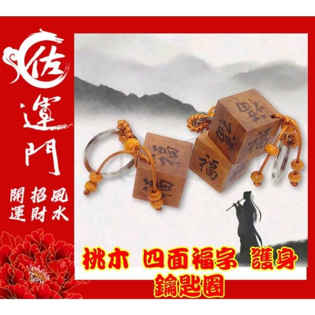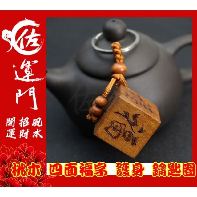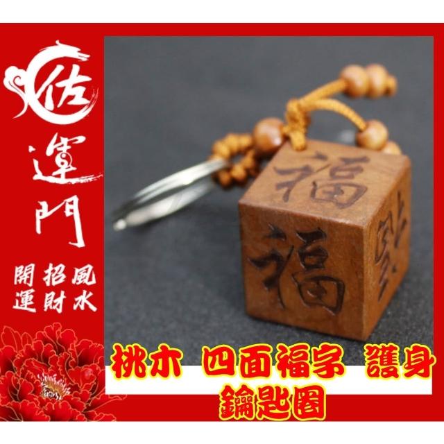 佐運門 開光 桃木 四面福字 鑰匙圈吊飾 平安鑰匙圈 平安 護身 避邪 吊飾 掛飾 隨身小物 開運小物 福 方形
