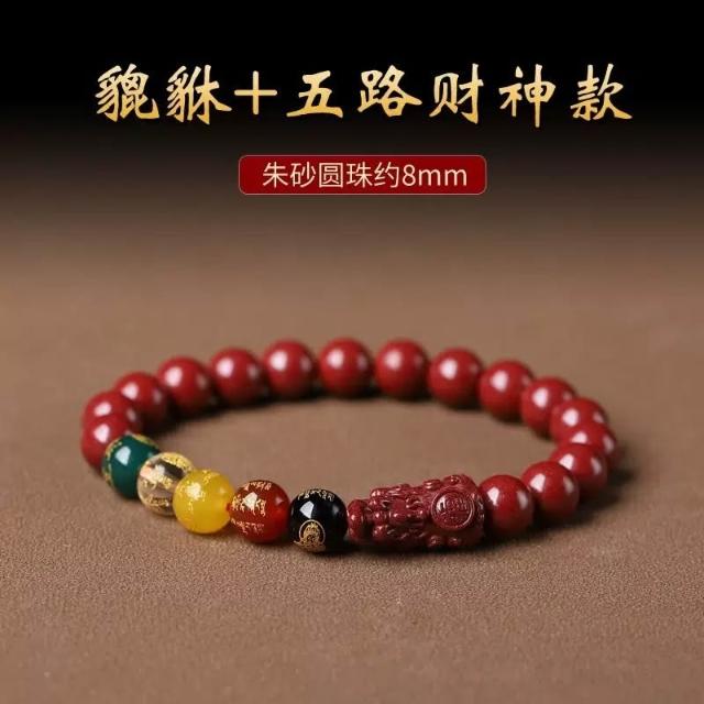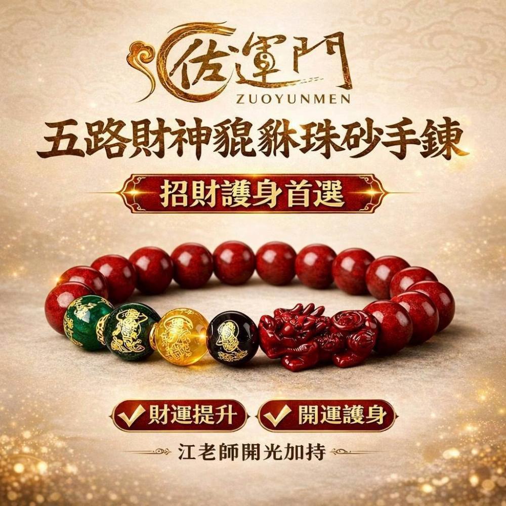 佐運門五路財神貔貅硃砂手鍊|珠砂手鍊 |朱砂手串|過爐開光|招財護身|開運轉運|過爐開光|貔貅手鍊|辟邪配飾|