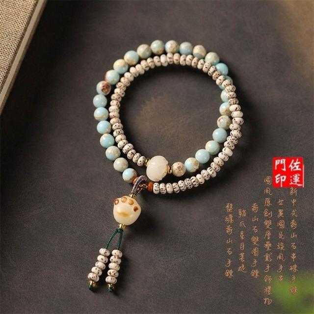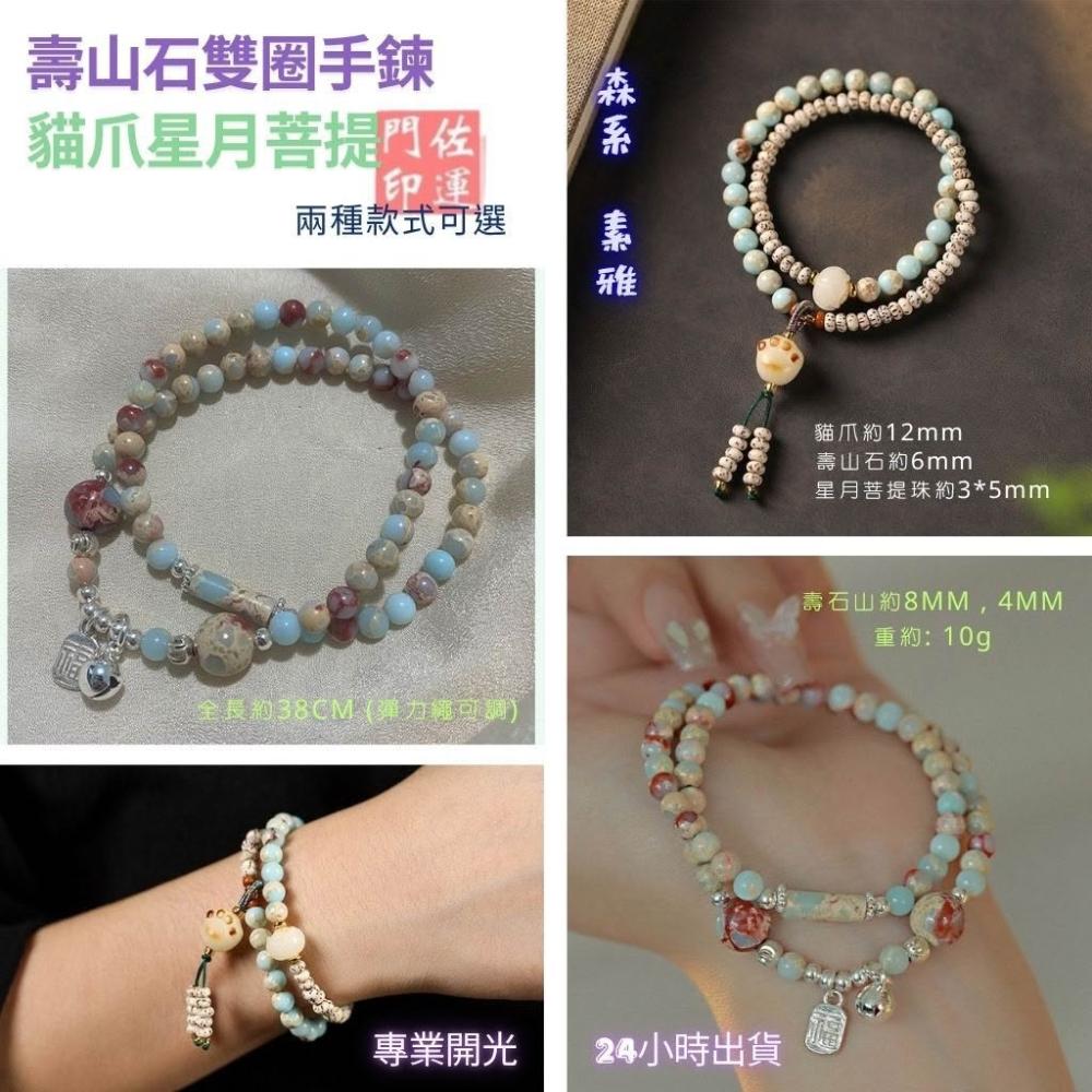 佐運門 專業開光 招財 貓爪星月菩提 壽山石雙圈手鍊 文玩手串 盤纏壽山石 盤纏手鍊 壽山石 串珠手串 文玩手串 貓爪