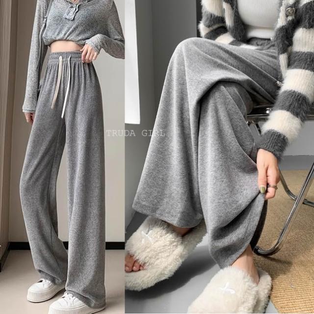 《杜達女孩》軟綿仿羊絨雲朵毛巾褲 軟糯升級 秋冬寬褲 棉質闊腿褲 休閒褲 長褲 加絨 針織長褲 毛巾褲 闊腿褲 寬褲