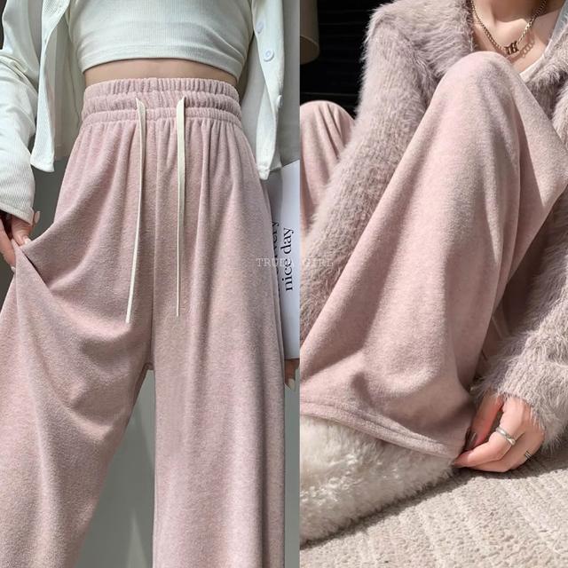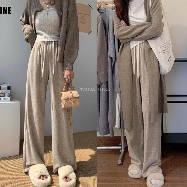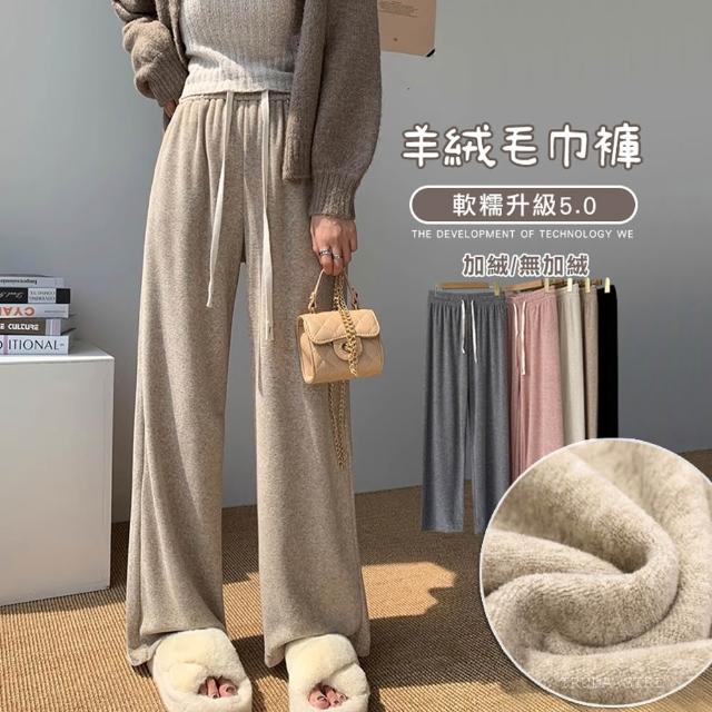 《杜達女孩》軟綿仿羊絨雲朵毛巾褲 軟糯升級 秋冬寬褲 棉質闊腿褲 休閒褲 長褲 加絨 針織長褲 毛巾褲 闊腿褲 寬褲