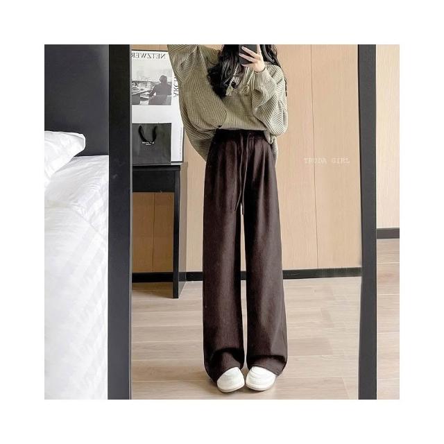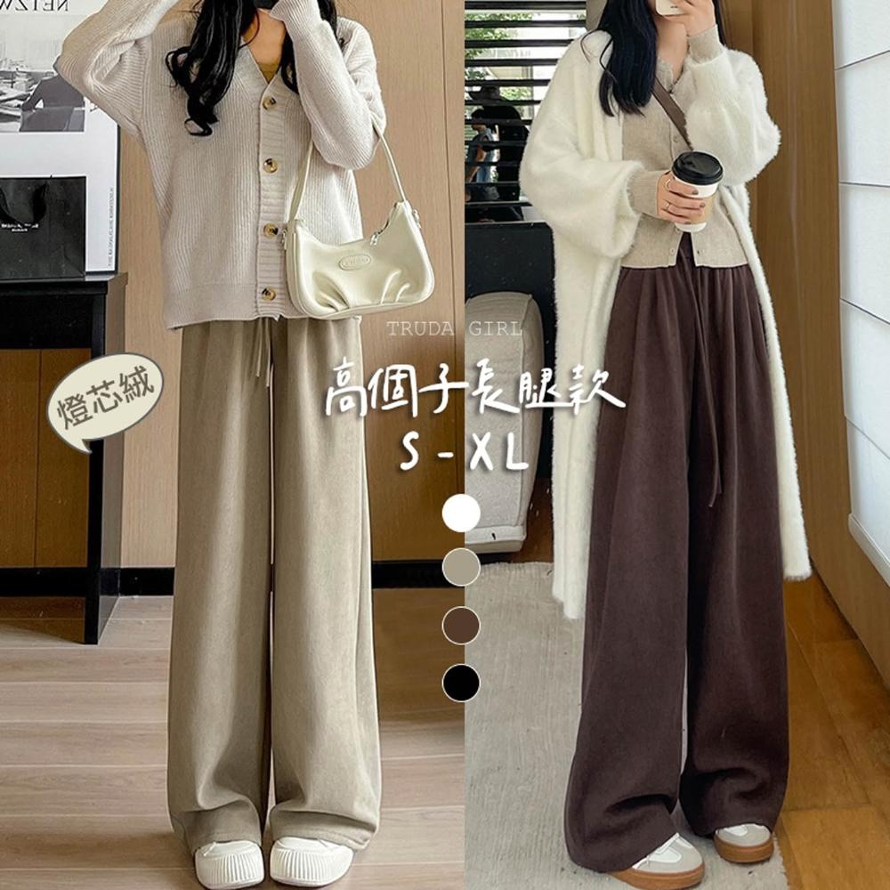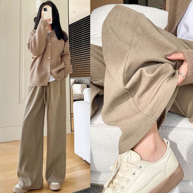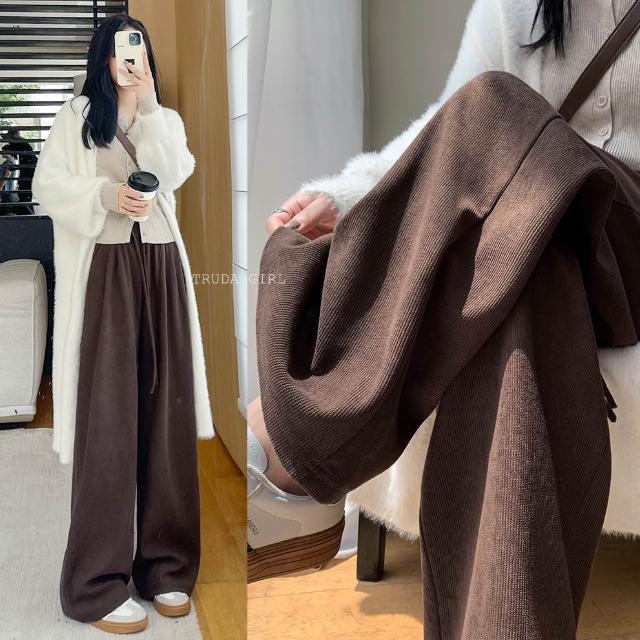 《杜達女孩》高個子長腿款加厚燈芯絨寬褲 休閒長褲 雪尼爾長褲 長褲 寬褲 闊腿褲 寬褲 鬆緊腰 抽繩寬褲 秋冬褲子 加厚