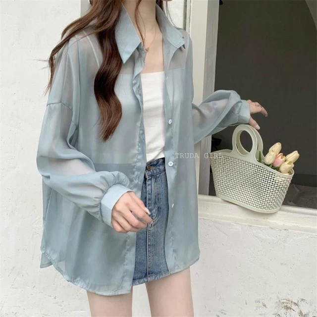 《杜達女孩》18色超人氣ins雪紡防曬罩衫 長袖襯衫 雪紡罩衫 罩衫 襯衫 透膚襯衫 防曬外套 遮陽外套 雪紡襯衫