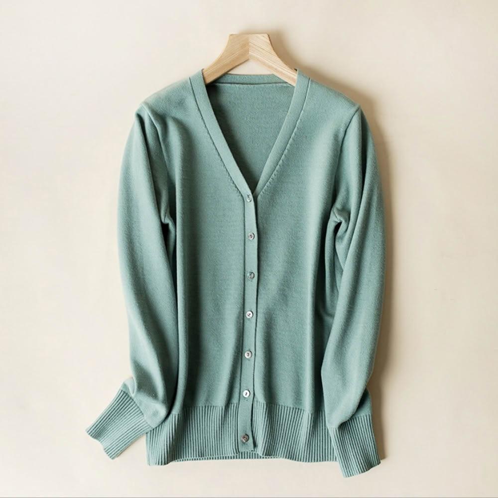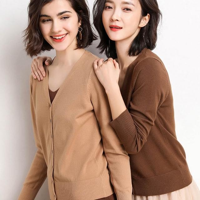 《杜達女孩》百搭親膚羊绒衫針織外套 100%舒適 V領 針織外套 長袖 包心紗 外套毛衣 長袖針織 女 大尺碼