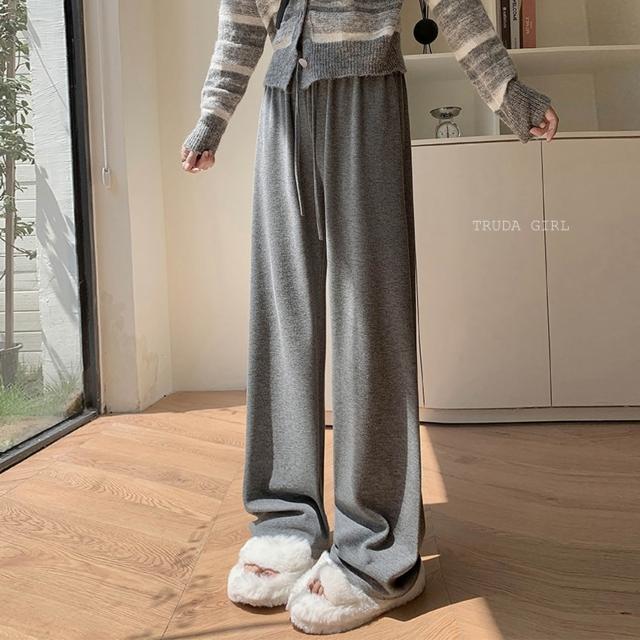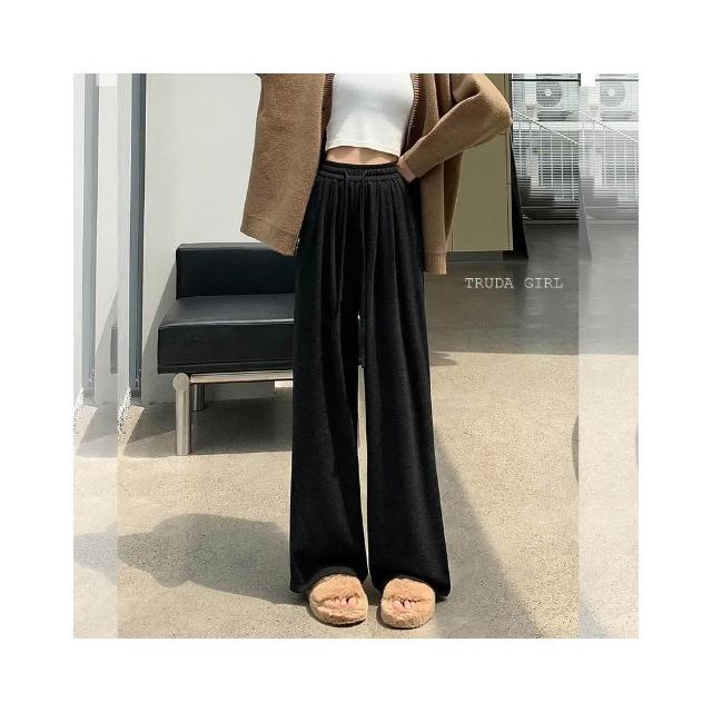 《杜達女孩》加絨仿羊絨糯米溜溜褲 軟糯升級5.0秋冬高腰寬褲 棉質闊腿褲 仿羊絨褲針織褲 拖地褲闊腿褲 長褲