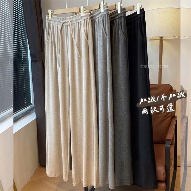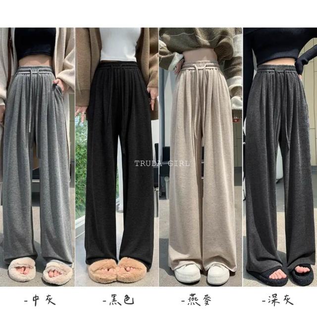 《杜達女孩》加絨仿羊絨糯米溜溜褲 軟糯升級5.0秋冬高腰寬褲 棉質闊腿褲 仿羊絨褲針織褲 拖地褲闊腿褲 長褲