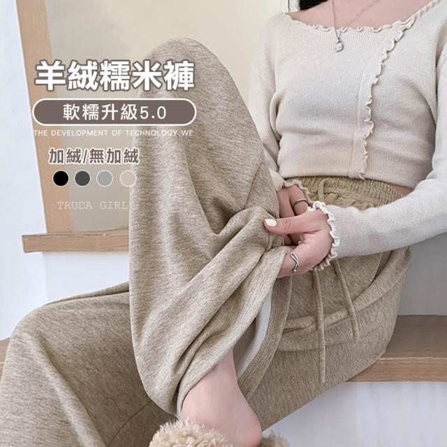《杜達女孩》加絨仿羊絨糯米溜溜褲 軟糯升級5.0秋冬高腰寬褲 棉質闊腿褲 仿羊絨褲針織褲 拖地褲闊腿褲 長褲
