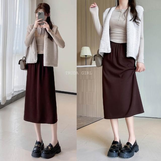 《杜達女孩》優雅章節 M-2XL鬆緊腰A字長裙 秋冬長裙 女長裙 裙子 顯瘦收腹 窄裙長裙 鬆緊腰長裙 開叉長裙 大尺碼