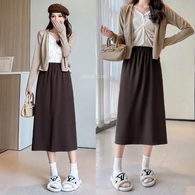 《杜達女孩》優雅章節 M-2XL鬆緊腰A字長裙 秋冬長裙 女長裙 裙子 顯瘦收腹 窄裙長裙 鬆緊腰長裙 開叉長裙 大尺碼