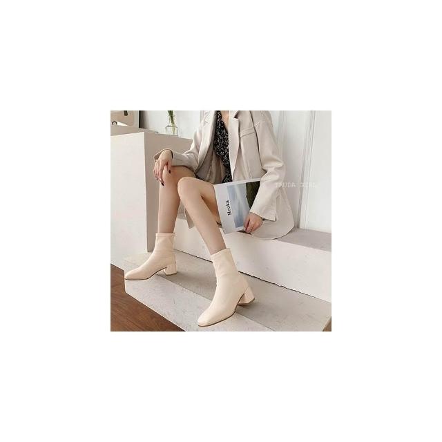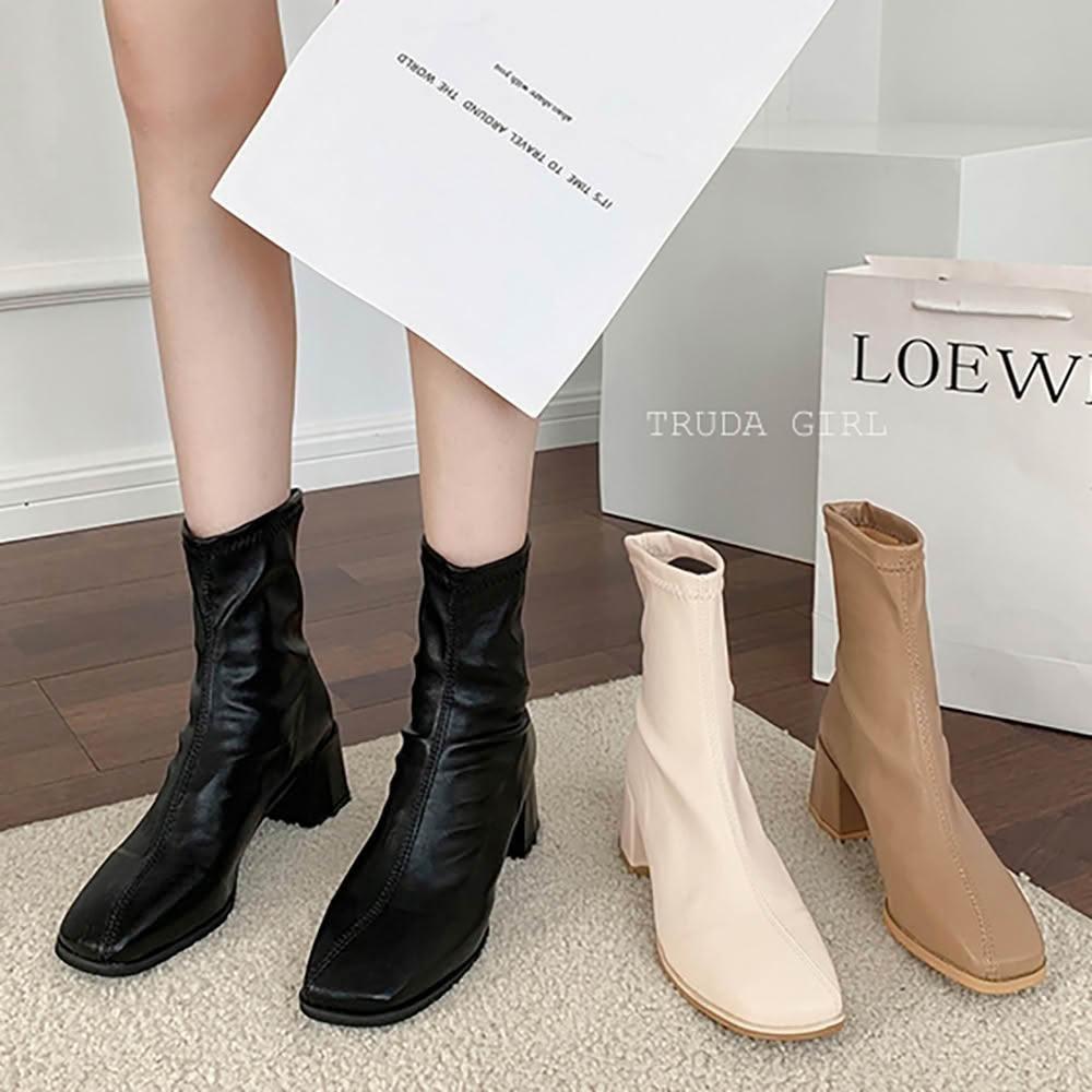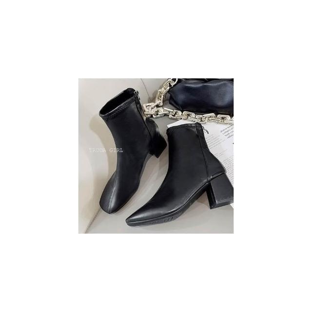 《杜達女孩》俐落百搭無敵短靴 質感霧面皮短靴 方頭皮靴 粗跟短靴 中跟靴 騎士靴 女 靴子 短靴 女鞋 踝靴